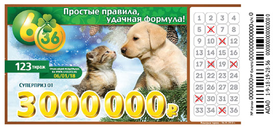 Вот и опубликованы результаты нового розыгрыша 6 из 36 от 6 января 2018 года. Мы предлагаем вам узнать игтоги и проверить билеты 123 тиража Футбольной лотереи по точным и официальным данным. Здесь вы найдёте выпавшую комбинацию номеров, тиражную таблицу Столото, а также проверку билетов по числам или номеру.