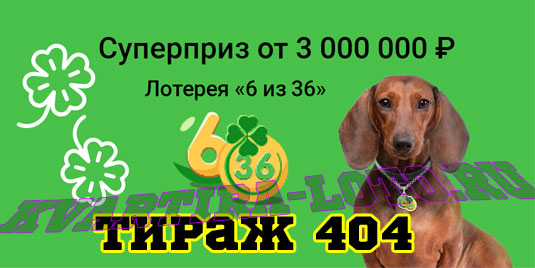 Лотерея 6 из 36 тираж 404 - проверить билет