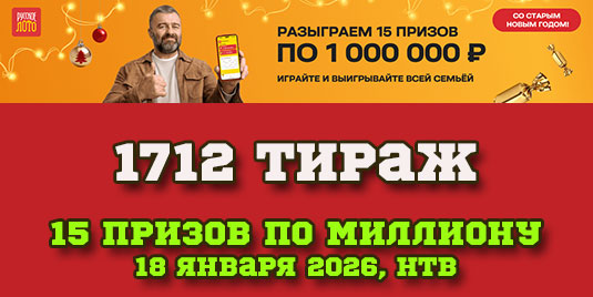 Тиражная таблица №1712 «Русское лото» от 18/01/2026